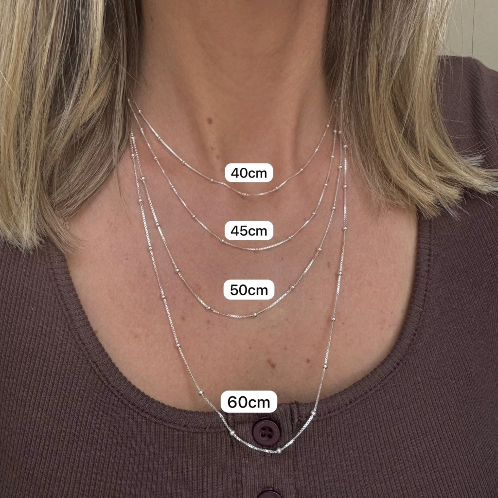 Delicada e charmosa, essa corrente veneziana ganha um toque especial com mini bolinhas espaçadas, trazendo movimento e brilho sutil ao visual. Versátil e atemporal, é perfeita para usar sozinha ou como base em composições modernas de colares.